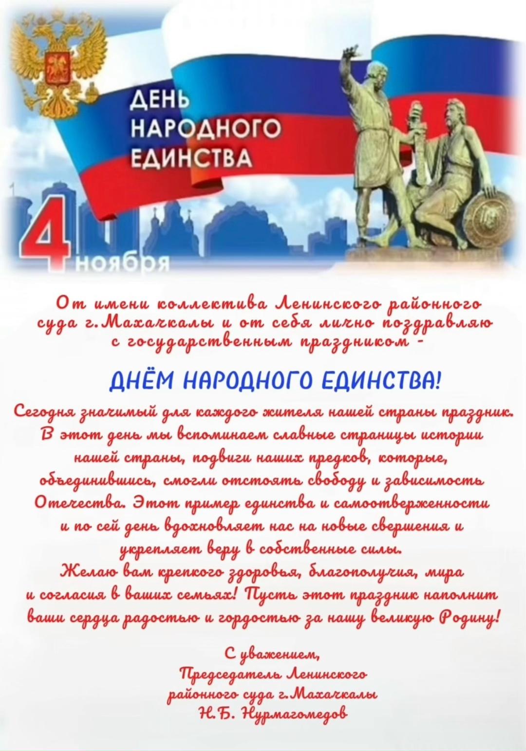 | Поздравление председателя суда с Днём народного единства! | версия для печати |